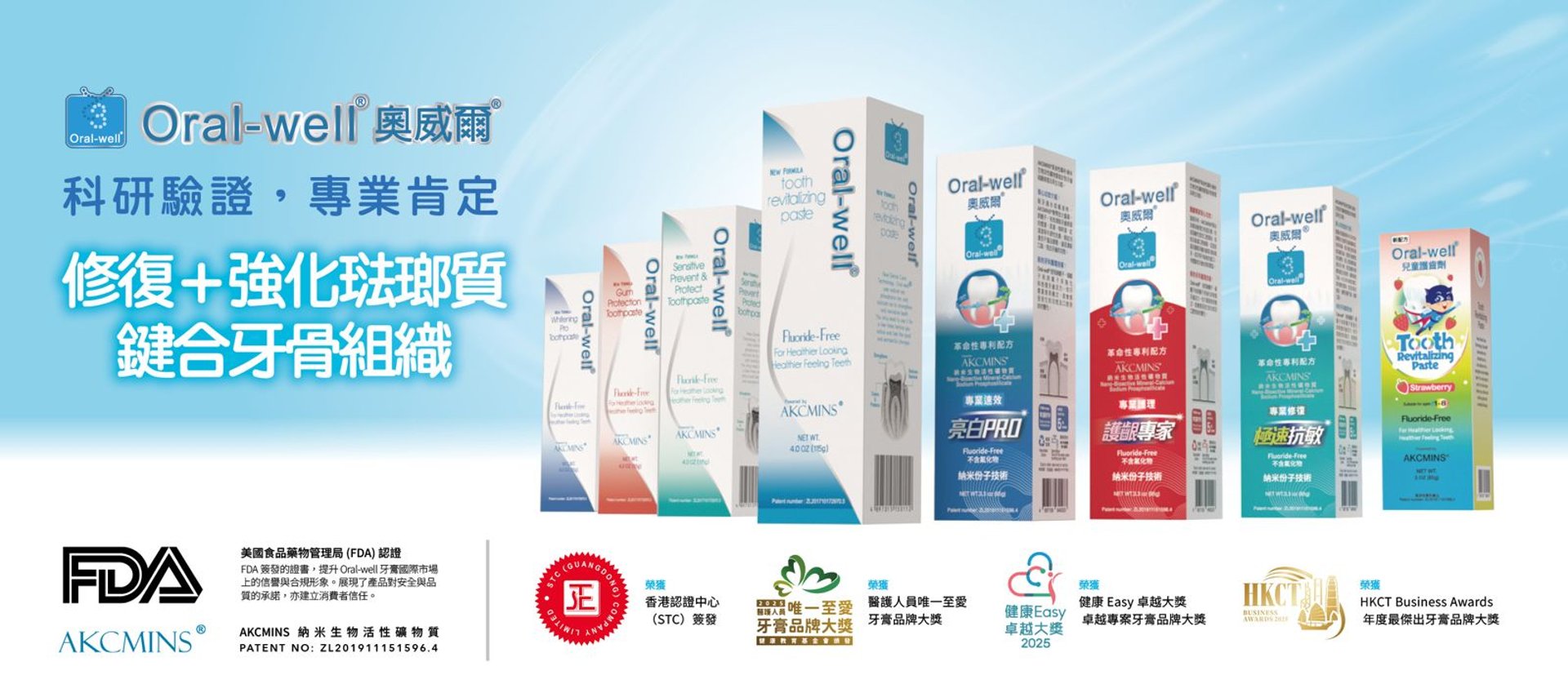 於本年10月Oral-well®又再下一城,榮獲2025HKCT Business Awards - 年度最傑出牙膏品牌大獎。